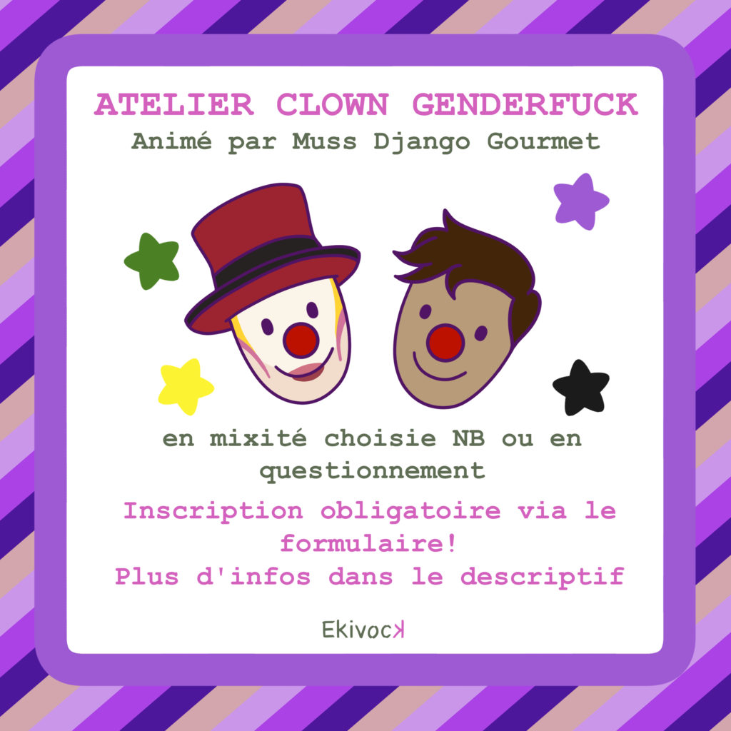 Aucune connaissance du clown n’est nécessaire, c’est un atelier tout niveau (zéro expérience ou pro, t’es bienvenu*e !)