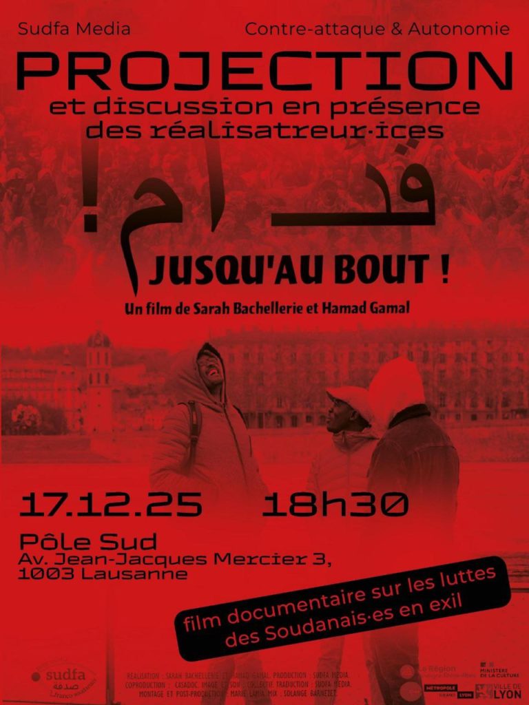 Un film documentaire sur les luttes des Soudanais·es en exil qui interroge ce que signifie lutter pour la liberté quand on vit loin de son pays. Depuis la France, des voix soudanaises cherchent à préserver une révolution menacée d’être effacée, à transmettre une mémoire politique et à maintenir vivante la force collective de la résistance La discussion qui suivra sera l’occasion de revenir sur la situation actuelle au Soudan, une guerre et des massacre dont on parle trop peu. Un moment pour mieux comprendre ce qui s’y joue, se documenter collectivement et partager autour d’une lutte qui mérite d’être entendue